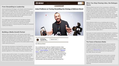 This article was originally published in CEO Weekly. The full article is here - https://ceoweekly.com/anton-prokhorov-on-turning-storytelling-into-strategy-at-beknown-brand/
